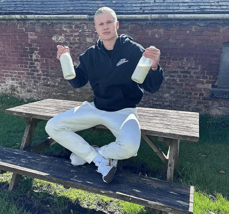 在他的YouTube频道(该频道内容涵盖他所有生活片段)上,他的购物清单上也经常出现:巨型烤牛排、生蜂蜜和牛奶,大量的牛奶。哈兰德非常喜欢这些。那种东西,尤其是生牛奶,他曾将其描述为他的“魔法药水”。这位挪威人喜欢在位于柴郡奥尔德利埃奇的六居室豪宅里,一边享用鸡蛋酸面包早餐,一边喝着加了枫糖浆的咖啡,他的女友伊莎贝尔-豪格森德-约翰森就住在这里。